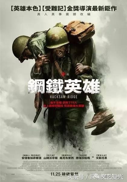 同样是今年大热片,《血战钢锯岭》是大陆译名,台湾叫《钢铁英雄》,香港直接叫《钢锯岭》。