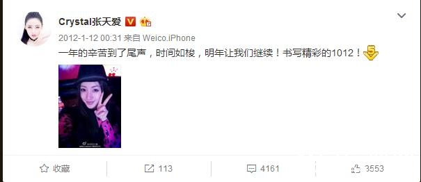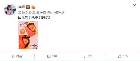 大甜甜早前的微博都已经没发看了,目前能找到的最早的一条微博是2012年2月份的,我们大甜甜很任性的po出了一组自拍
