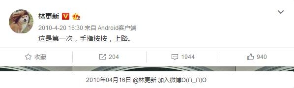 和吴亦凡一样,林更新的第一条微博也是相当耿直