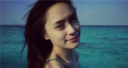 阿娇度假的时候在微博晒的素颜照,清水出芙蓉,天然去雕饰