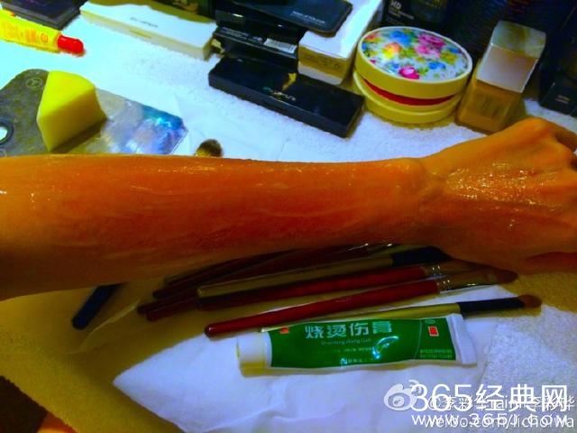 最心疼的就是李彩桦了,她就是《回家的诱惑》那个坏女二。在拍戏的时候被火灼伤,手臂一大片都是火红火红的。摸了烫伤膏之后,就是这个样子的。
