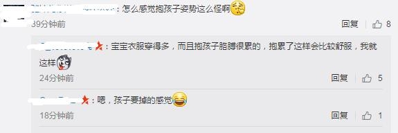 但是也有网友说应该是抱孩子抱累了,这样抱会舒服点的~