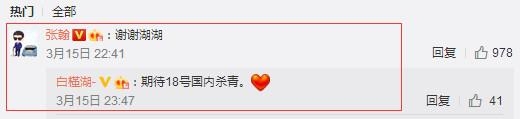 而张翰也在微博中回复:谢谢湖湖,足见张翰和白槿湖之间的关系不一般,但从白槿湖的回答中能够看到其透露着另外一个信息。