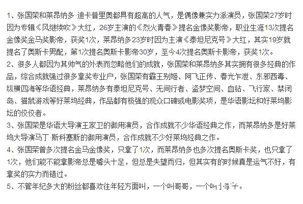 张国荣和莱昂纳多·迪卡普里奥