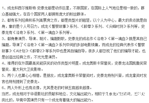 别说他俩长得还真像!今年好像成龙和史泰龙会合作一个电影。好期待