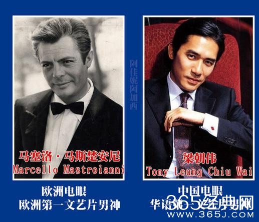小时候是觉得布拉德皮特对应梁朝伟,但是现在发现梁朝伟和马塞洛·马斯楚安尼更像,他们都有一双迷人的电眼,能迷倒不少人,而且都风度翩翩,演技出众。
