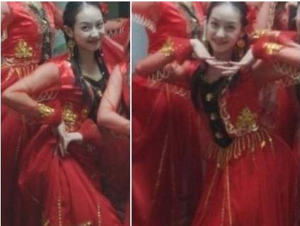 14岁的迪丽热巴身穿新疆服饰,应该是参加了学校的什么活动。