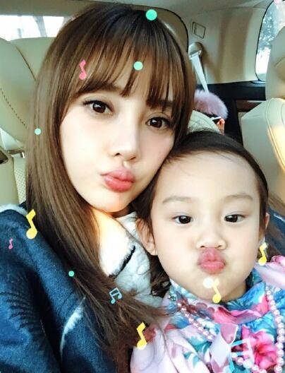 韩国第一美女金喜善 与女儿 女儿丑萌到家了