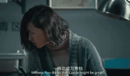 接着是周一围饰演的记者李正。她一脸笃定,说话铿锵有力,动作坚定而又有气势。紧闭的双唇,体现了李正一股大义凛然的气质。