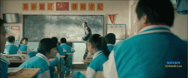 饰演一个中学的历史老师,两腿弯曲,背有些佝偻,一进教室转头看一眼自己的学生。