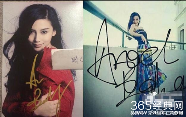 baby的签名相对而言就比较好认了,都是英文字母,而且每一个都能看懂,不过她有两种写法,一种是全拼,一种是Angelababy只写A。
