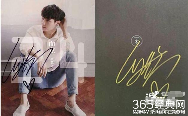 张艺兴喜欢签自己的英文名LAY,看起来随性,还不忘在右下角画个爱心,这撩妹的。