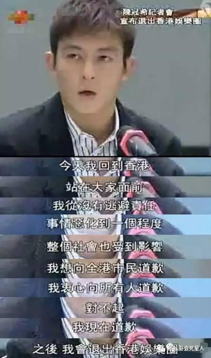 事后陈冠希也出来道歉了,表示自己给年轻人做了不好的示范,并宣布无限期退出娱乐圈。