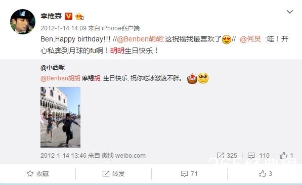 看得出来李维嘉经常关注小胡的微博动态,小胡转发的微博,李维嘉十有八九也会转发