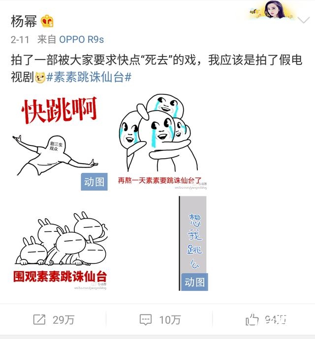 基本每天或隔天就上一次微博热搜榜,从“杨幂发际线”,“白浅蛇吻”,“整容般的演技”,到“围观素素跳诛仙台”,“糯米小团子”,“我的心,我的肝,我的宝贝甜蜜饯儿”再到“手撕素锦玄女”等等,
