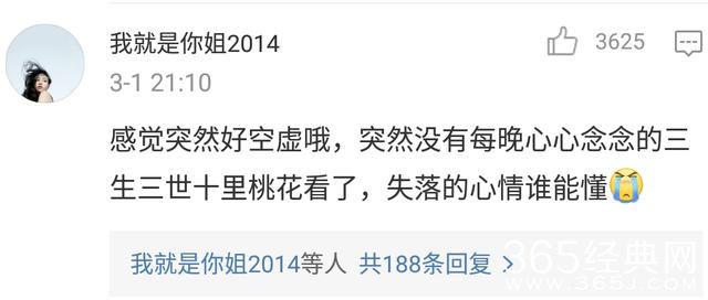 哎,真是可惜,时间原来过得这么快,《三生三世》已经大结局了,感觉好像自己还在追着剧,微博上许多网友都表示不舍。