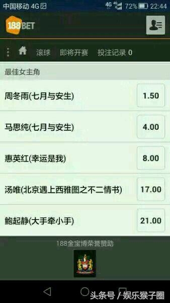 简单关注了一下,发现周冬雨的赔率最低,马思纯紧随其后。看来在大家心中,继拿了金马奖后,周冬雨越来越得到了大家的关注和认可。