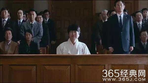 电影的结尾宋佑硕眼里闪着泪光,坐在被告人的位子上,身后一直有律师不停的为他站起来作证。