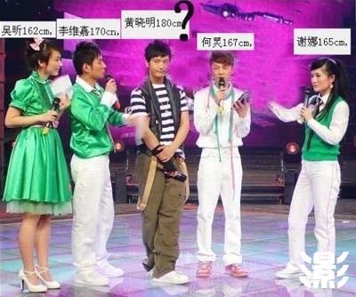 黄晓明和小四的身高多年来是娱乐圈猜不透的谜。官方上黄晓明的身高是180cm,在节目中晓明欧巴一直宣称自己净身高1.79,还曾当众脱鞋以证“清白”。