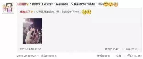 不过事后赵丽颖有发微博说亲到男神了,一看就不是真的。