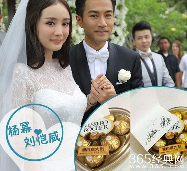 而大幂幂结婚的伴手礼的梗就广为流传了,费列罗巧克力,偏大众化,在包装上也没有特别定制之类。据说还把巧克力按规格分成三六九等,最大盒送给了范冰冰、孙俪等大咖...