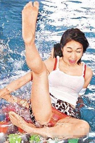朱茵,紫霞仙子也开始抠脚丫了,胸前遮挡的毛巾也掉下来了。