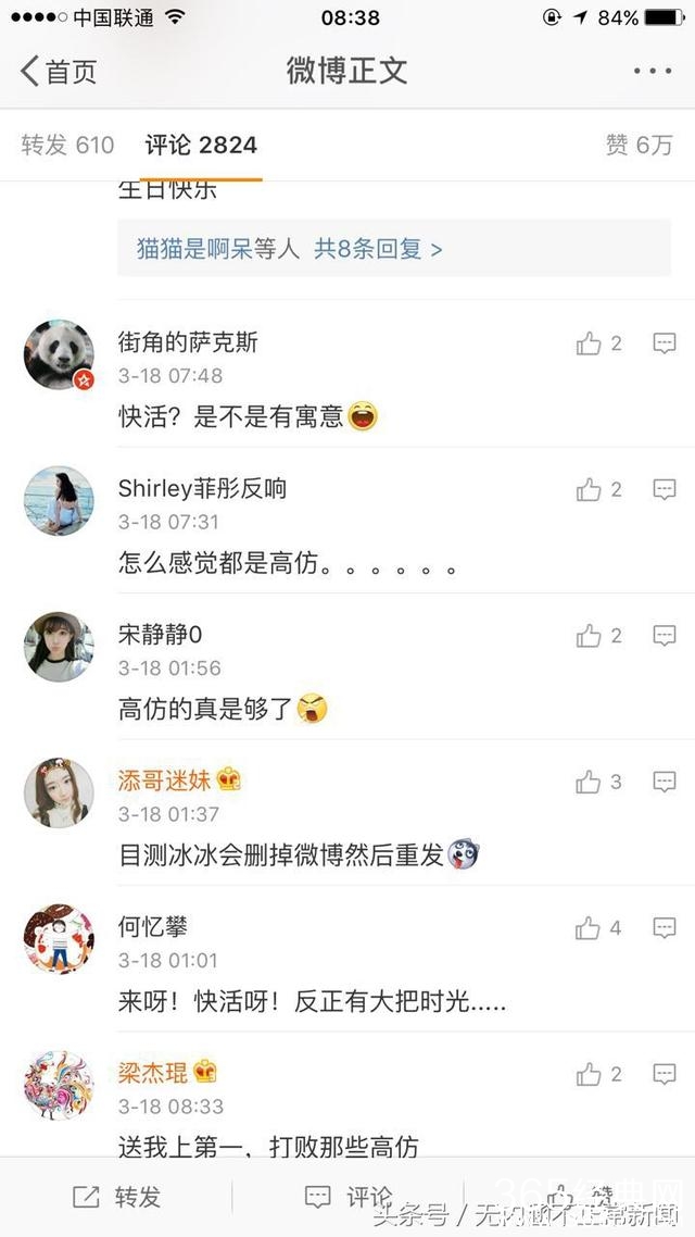 内涵哥是这样认为的,首先,正常情况下圈内人应该会称其为冯导,直呼其名可看出两人关系甚好。其次 生日快乐 被 生日快活 取代,活字可以说运用得淋漓尽致。快活跟快乐是近义词,毋庸置疑换个不同祝福方式显得与众不同。看得出来冰冰又在跟冯导谈角色了,这波分析估计没毛病!
