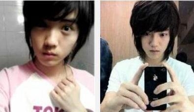 这应是青春期的小鹿啦,第一张图还好,发型还有那么一丝丝的小个性呢。不过第二张~有点吐血了。 谁没有经历过非主流时期对吧。 手扒衣领,骚气十足~~ 不过你仔细看,小鹿当时用的还是IPhone4呢~感慨感慨